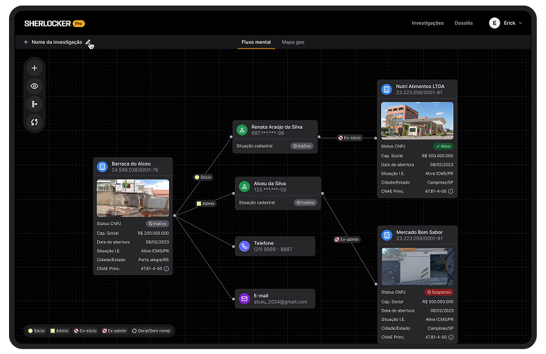 Inteligência artificial analisa conexões, identifica fraudes e mapeia grupos econômicos para você.