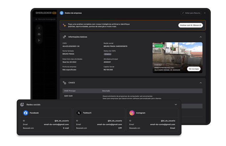 Investigue quantos CNPJs, CPFs, telefones e emails quiser. Sem limite. Sem restrições.